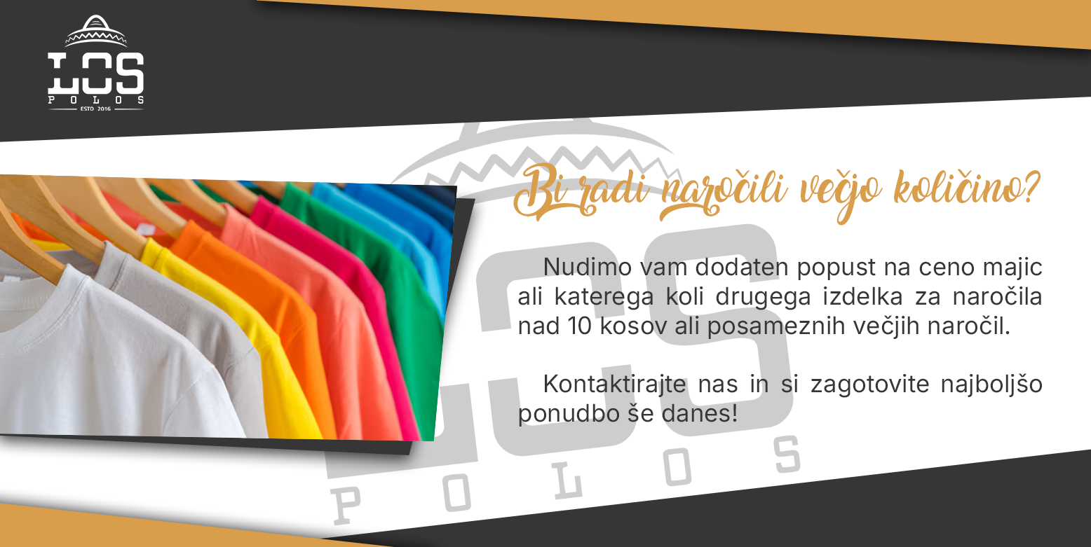 +1,50 EUR -z doplačilom lahko naročite majico: z V izrezom, majico iz poliestra (športno majico), majico brez rokavov.